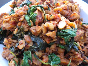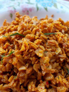 เตมเปผัดน้ำพริกเผา(ใส่เม็ดมะม่วงหิมพานต์)