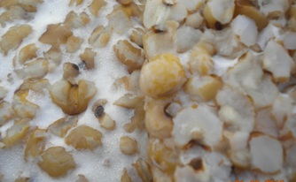 2. เตมเปโดยลูกเดือย เงานวิจัยของสุภางค์ นึ่งลูกเดือยเป็นเวลา 30 นาที หรือนิ่มได้ที่ ใช้หัวเชื้อ (1%) บ่มเป็นเวลา 24 ชม.
